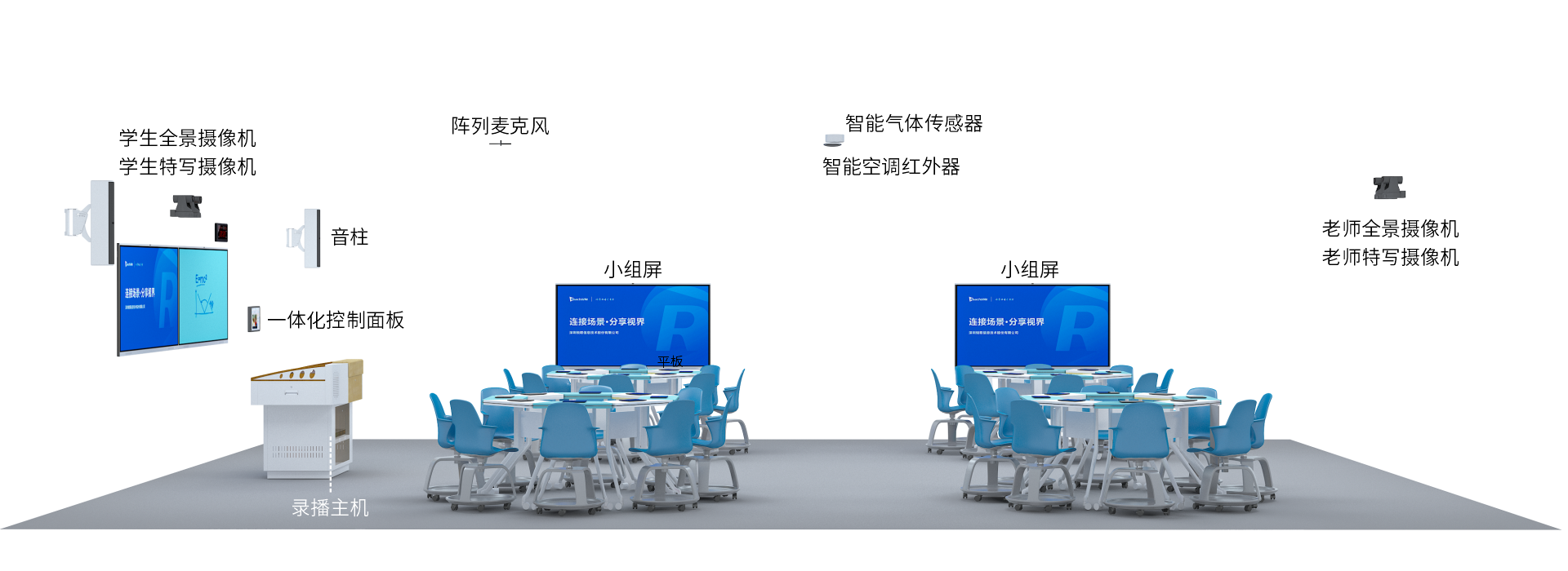 銳取智慧教室是以學?為中?的交互型智慧教學空間,通過靈活的空間布局,運?先進的信息化技術,實現智能互動、協作交流和泛在學習等多樣化功能,讓課堂互動更有趣,師?教與學更輕松!
