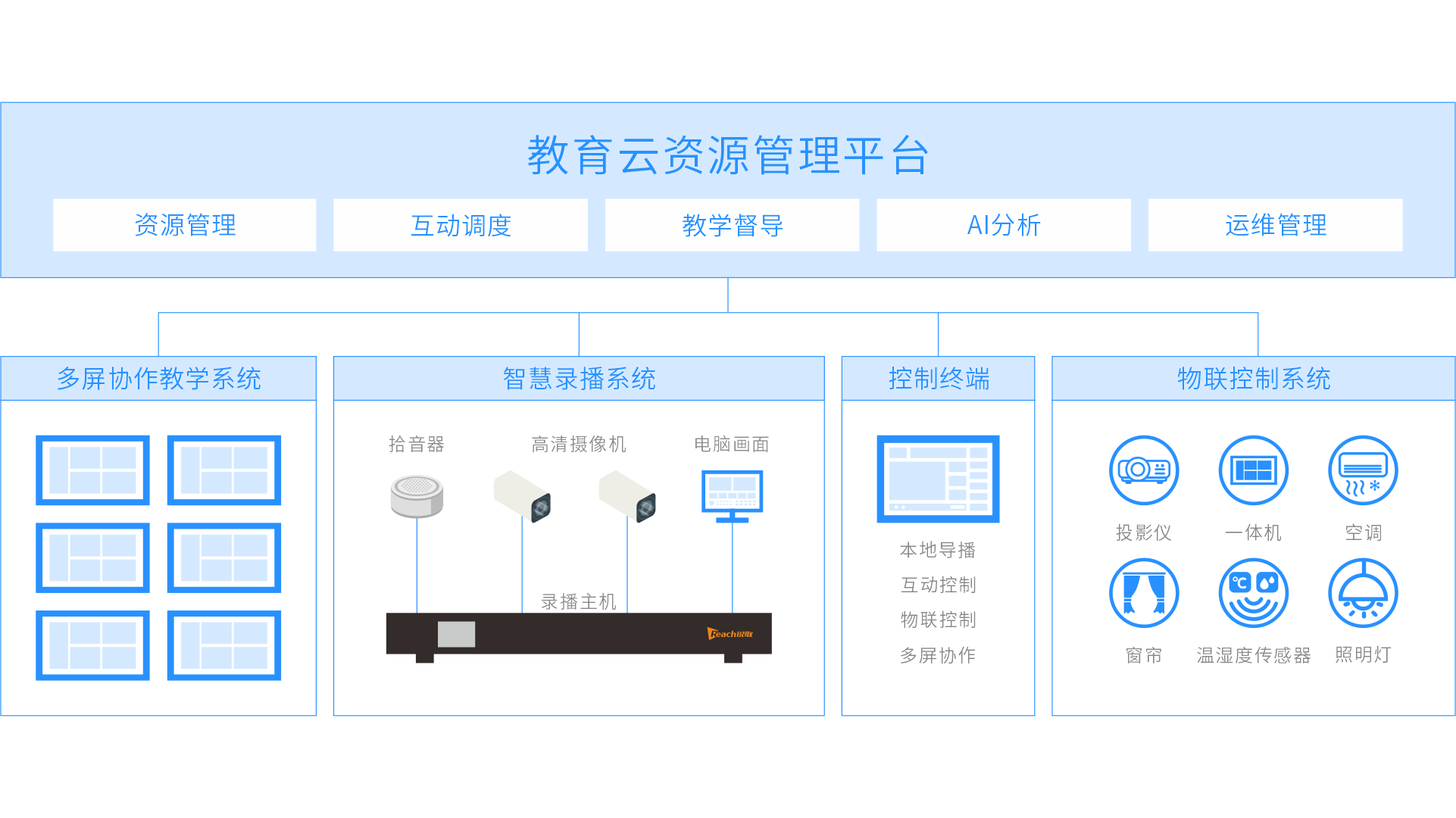 教學資源自動上傳集中管理,設備統一管理,隨時開展在線巡課督導評價等活動
