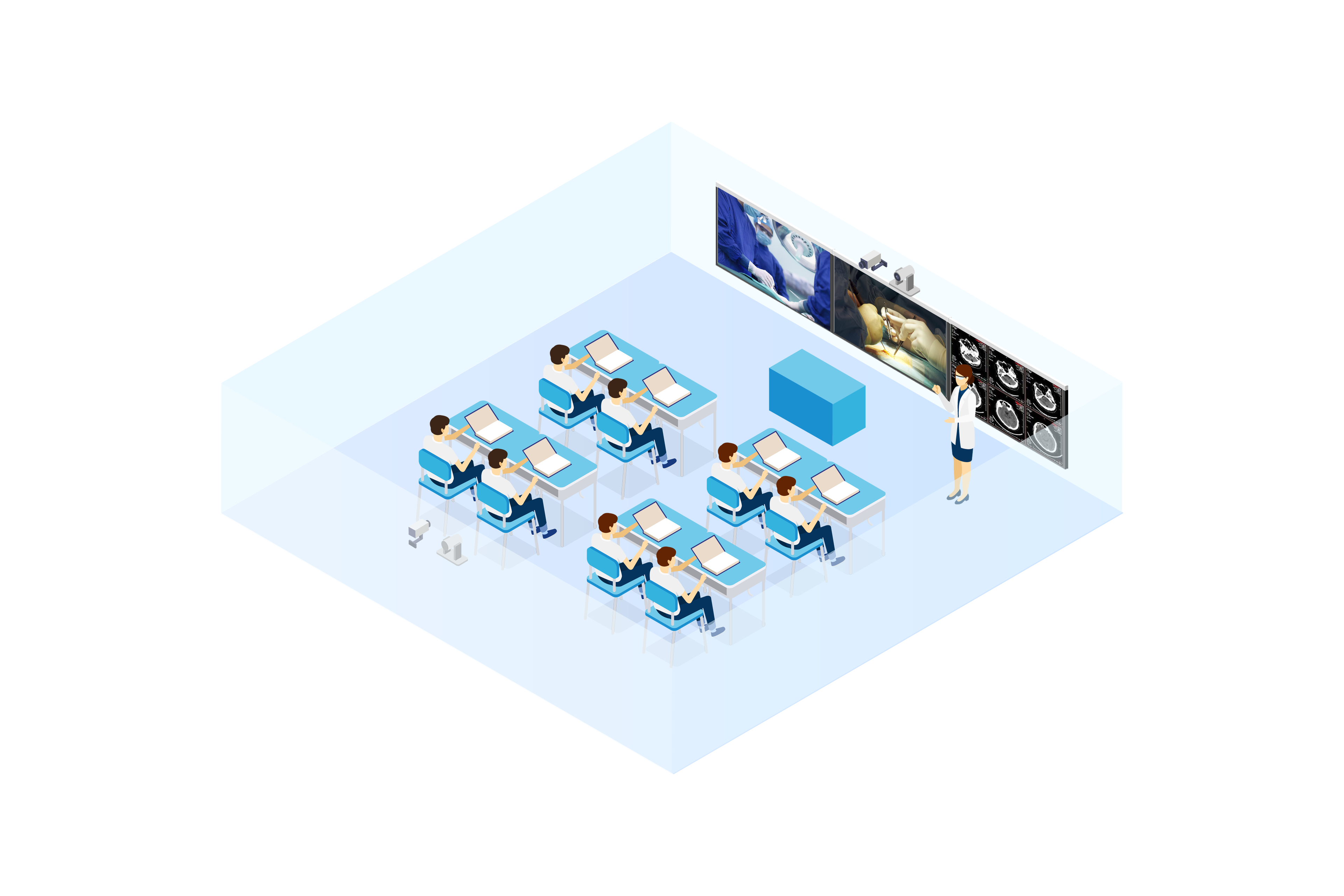 銳取標準互動示教室無需裝修部署簡單采用"所見即所錄"的模式,對觀摩訓練、手術轉播、教學模擬等過程進行真實全面的記錄,滿足本地示教教學、遠程互動教學、在線直播教學等場景應用。