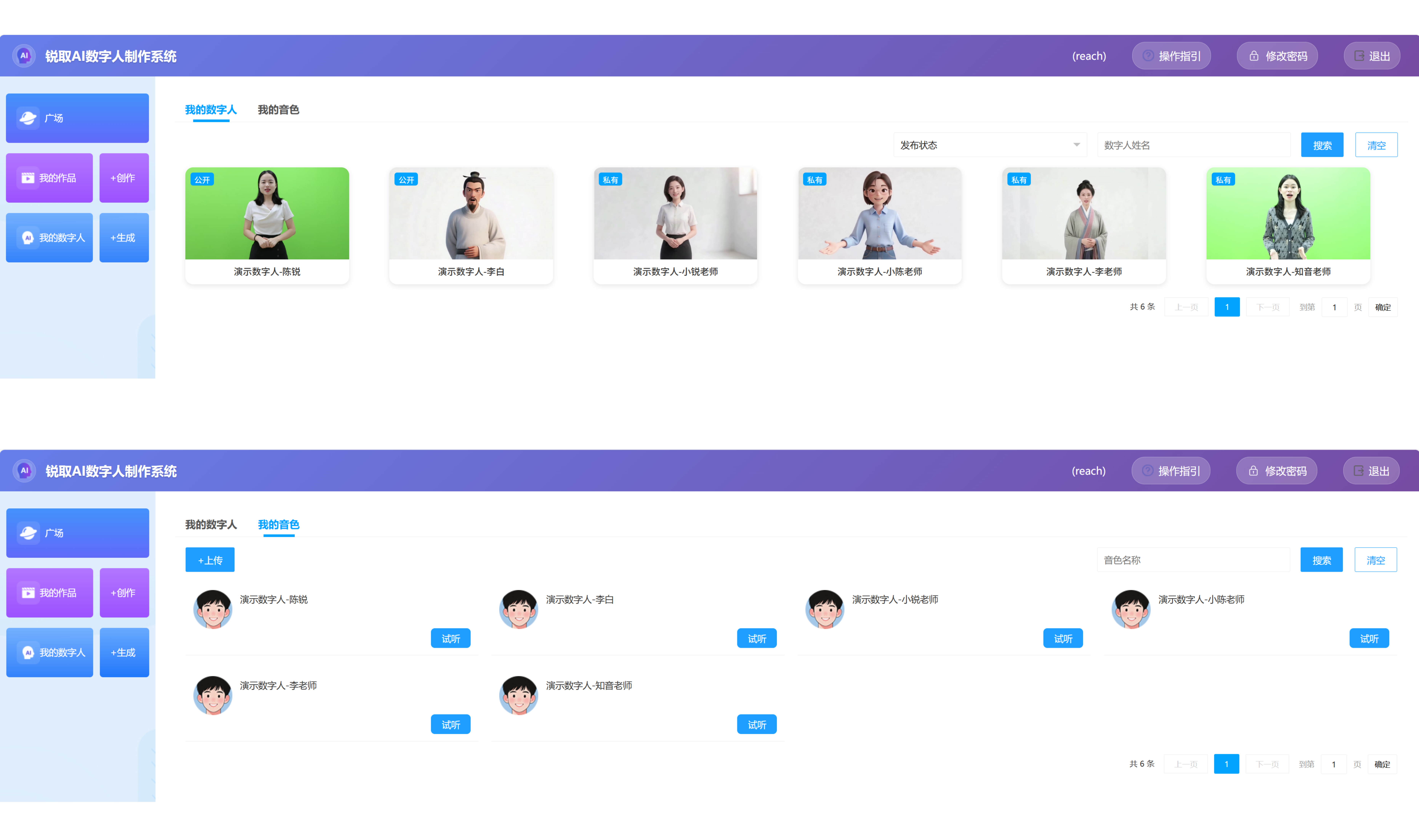 在銳取AI數字人制作平臺,錄制的人物信息形成專屬