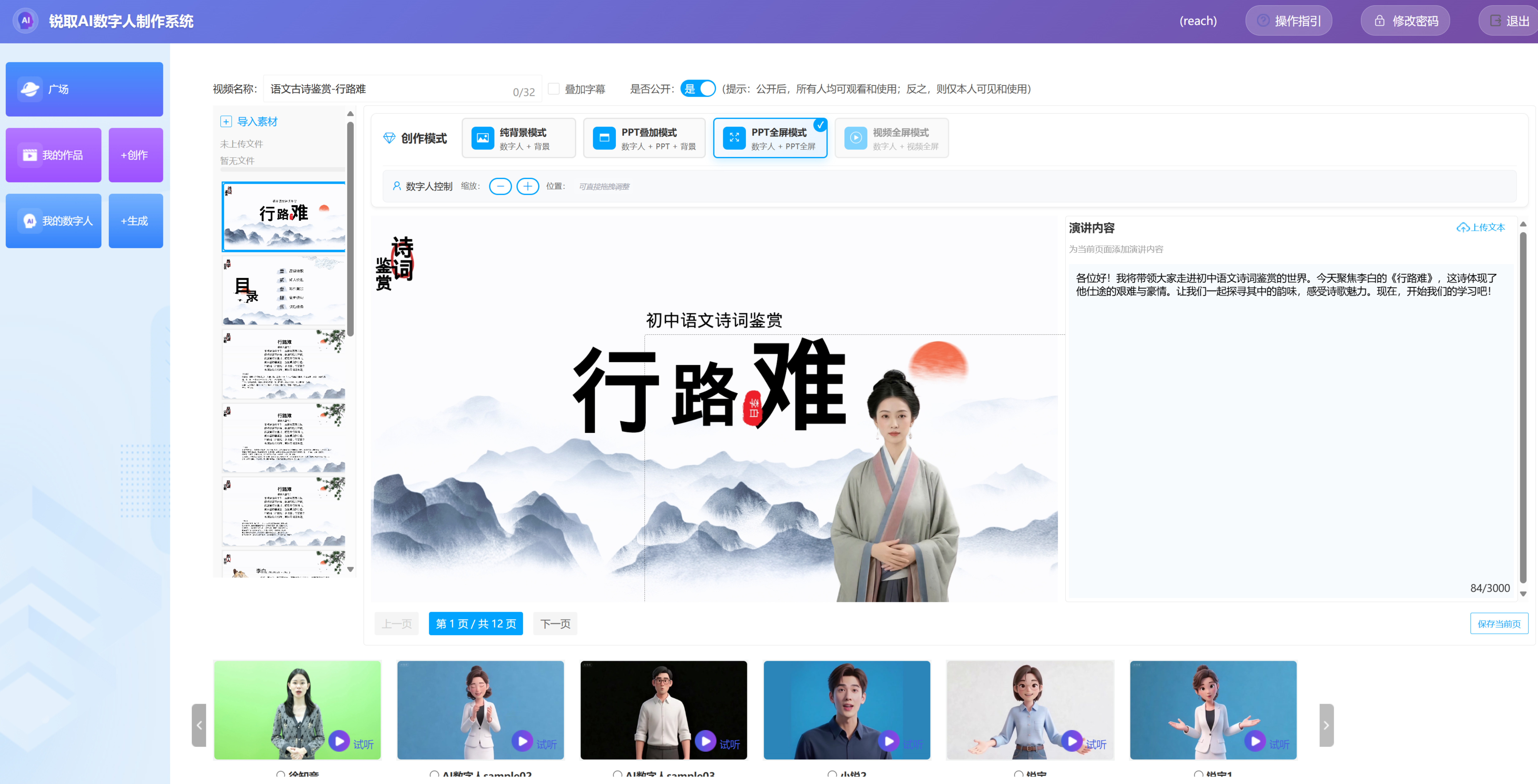 銳取AI數字人制作平臺支持PPT、圖片、視頻等素材